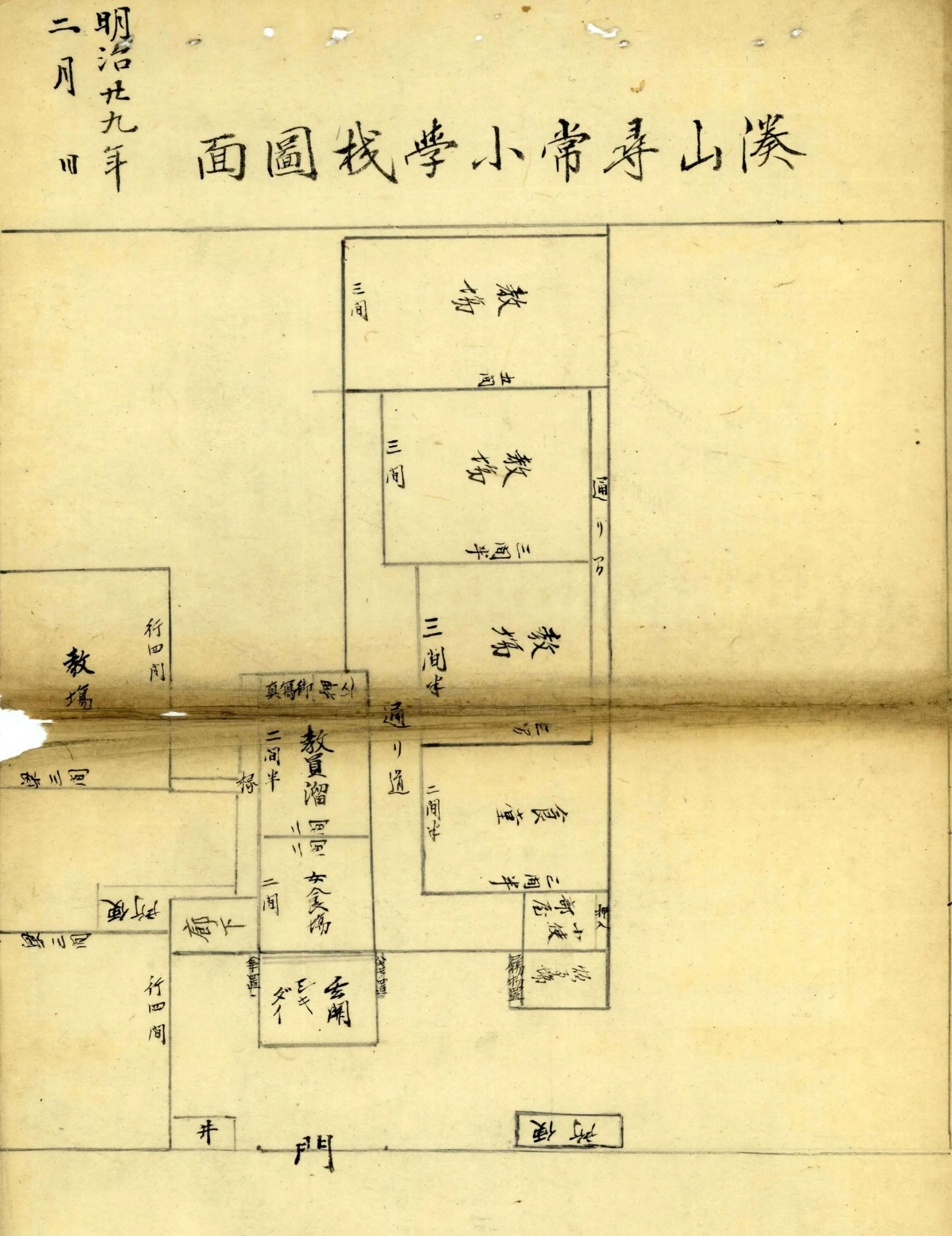 この資料は、湊村長代理から神戸市長に提出された財産引継書です。リストの中に「湊村役場」や「湊村尋常小学校」とあるとおり建物の引継ぎも行われ、建物図面も付されました。