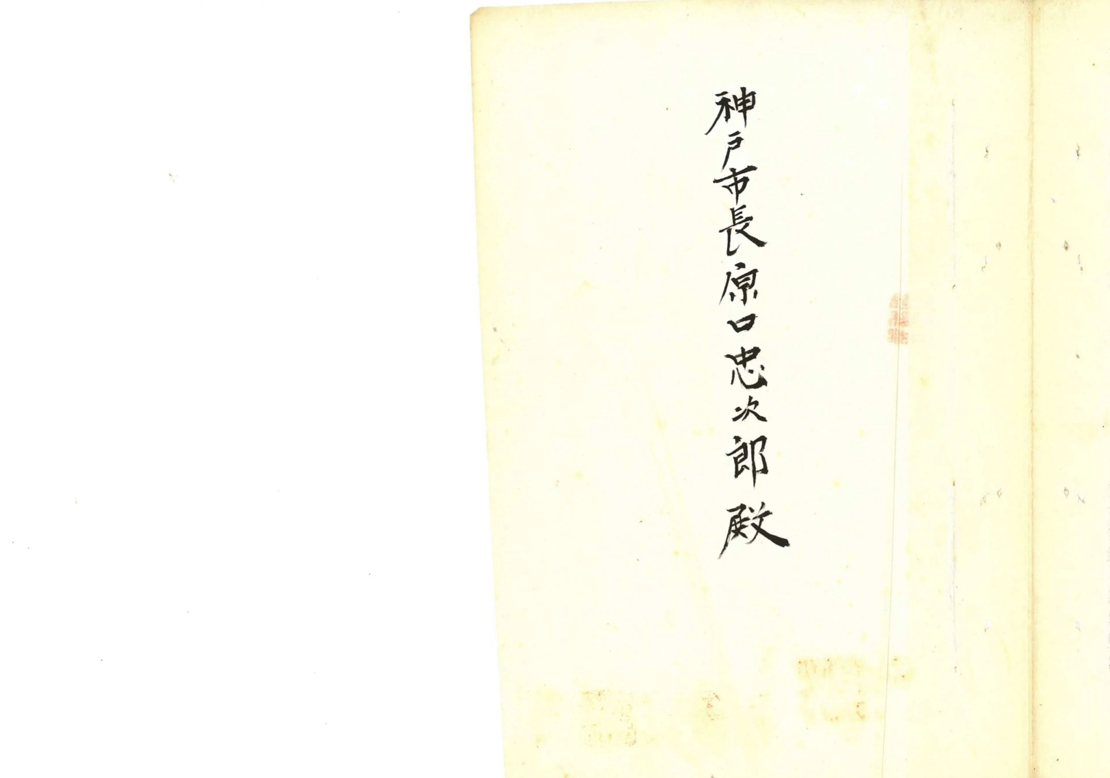 1950年2月に、道場村から第12代・原口市長に宛てた合併の嘆願書です。道場村のアピールとして「神戸市民の生命を司る千苅水源地」と「観光地帯」であることを挙げています。水源地の管理を市が徹底して行うことは、市と村に利益のあることでした。また、道場村のみならず、現在の北区は自然豊かな観光地として人気があります。そのことを考えると、このアピールは的を射ていたといえます。さらに、1950年のシャウプ勧告により地方自治を強化する必要に迫られたため合併を急いだという背景も、嘆願書中から読み取ることができます。