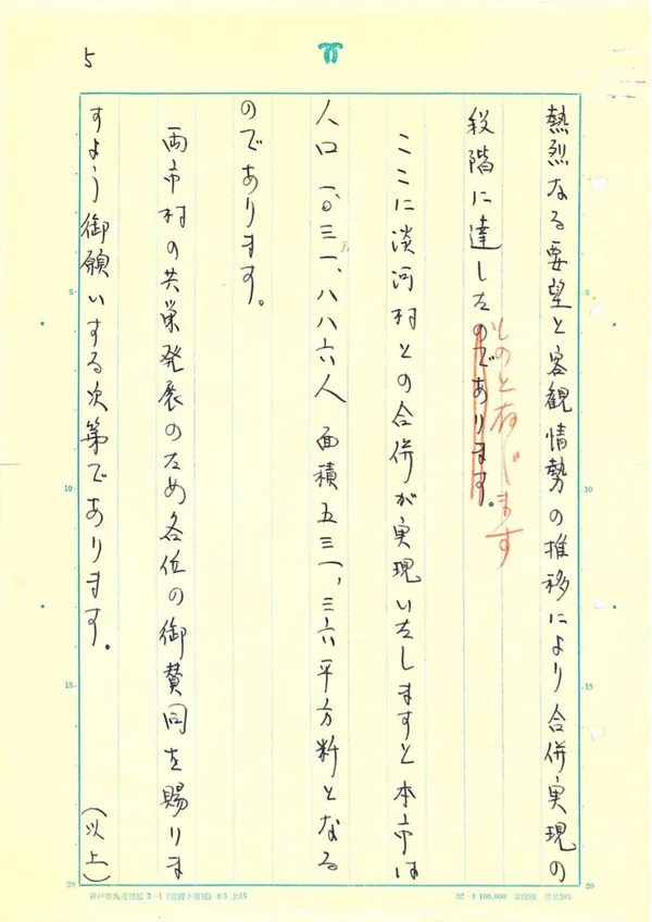 史料1 淡河村・上淡河村の合併嘆願書-2
